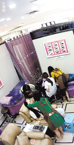 重庆的一家美容院内,一名顾客正躺在一张沙发上,两名工作人员正为她服务,而旁边的床上也有一位顾客在接受服务。旁边的聊天对话框里,有人说“老娘们”,也有人说“诶,美眉。就是要原生态,都整的跟缝衣线似的,看着闹挺,尤其是A面不好的”。江苏一个小区内的厨房内,一位小朋友和一位大妈正边吃饭边看电视,除了两人偶尔的交流,还能听到电视中少儿节目的声音。旁边有人评论“吃货”、“家庭不错”等。山东烟台一间教室里,晚自习已经开始,一位老师正在给学生讲遗传信息。旁边有人留言“老师不用趴后门偷看了”、“晚上6点30了还上课啊?”等等。