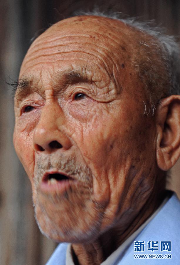 见证国共合作抗日救亡97岁的原天台县抗日战时政治工作队队员陈立枢在讲述当年国共合作组建该县抗日志愿兵团的往事(9月12日摄)。新华社记者谭进摄