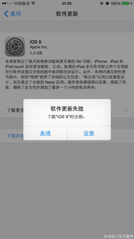 当然,一个悲剧的现实是,17号早上大家都在升级,所有人都在从苹果的服务器上下载iOS 9的升级包,所以速度超级慢。实在等不及怎么办?