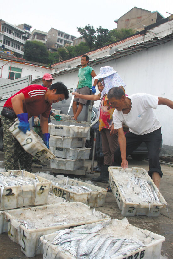 9月19日中午,在温岭市石塘镇杨柳村码头,渔船陆续归来,渔民们正忙着将一筐筐海产品搬运上岸。当日回港的是在附近海域捕鱼的渔船,船体较小。随着开渔后出海渔船和接鲜船的不断归来,海产品将大量上市,价格也将有所降低,市民餐桌上的海鲜品种将更丰富更实惠。