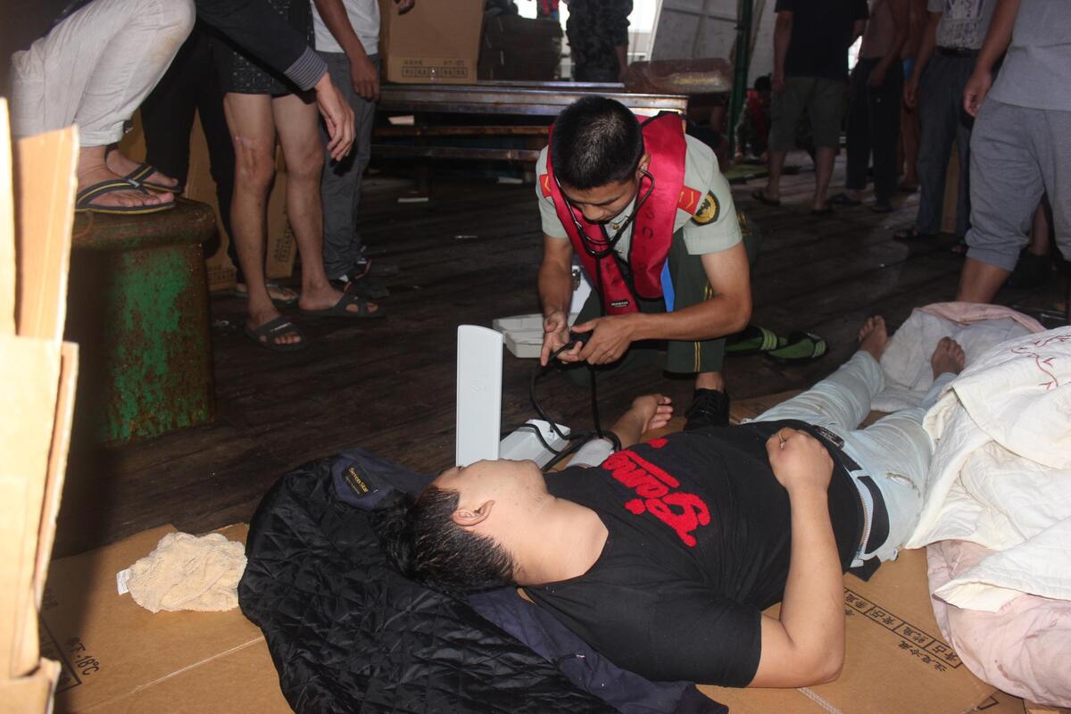 浙江在线台州频道9月21日讯(通讯员 张淼) 东海伏季休渔期结束后,浙江沿海大批渔民纷纷出海捕鱼。9月20日晚,浙椒渔冷87005船在219海区(北纬27度40分,东经123度37分)进行捕捞作业,船员宫某(湖北人,26岁)在将海鲜装箱过程中,突然鼻子流血,肚子剧烈疼痛,紧接着陷入昏迷状态,情形十分危急。船长毛玲华见情况不妙,一边赶紧将船往回开,一边打报警电话求救。