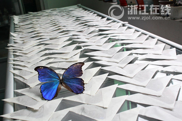 近期,浙江检验检疫局杭州邮检办在对来自台湾的函件查验时,就发现了在一团棉花包裹中的闪蝶标本,共计2批,180只。这是杭州邮检办连续第4次截获来自台湾的昆虫标本,已累计截获449只。