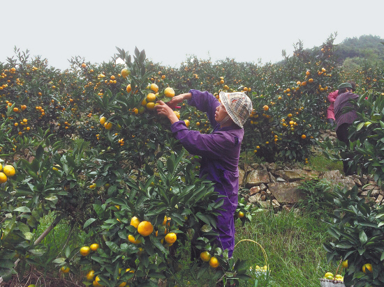 昨天在临海涌泉镇忘不了果园种植基地,工人们正在采摘特早熟蜜橘。据了解,忘不了柑橘种植基地种植的500亩新品种橘子已经成熟开始采摘,比周边普通橘子提前一个多月成熟。记者了解到,这批橘子售价为4元/斤,礼品装为8元/斤。