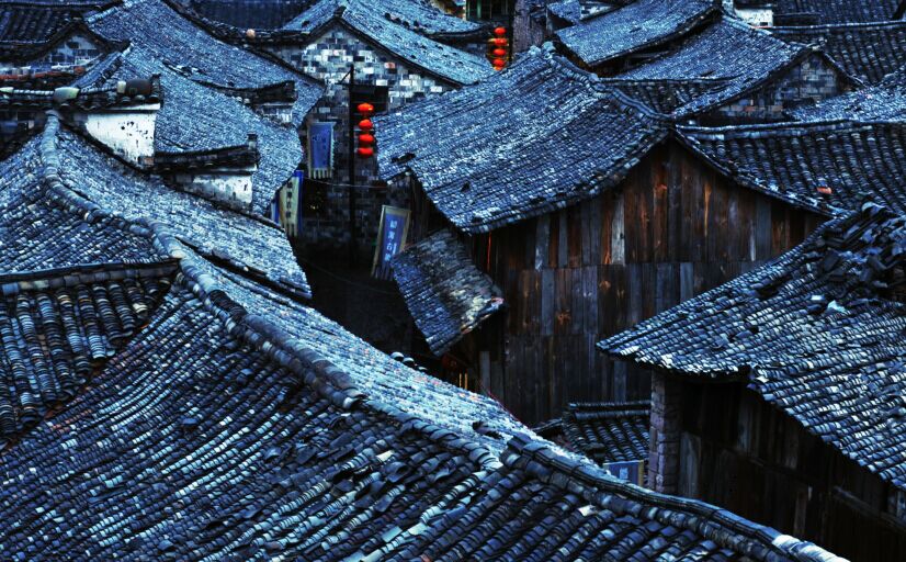 而古城内,依然是青石铺就的小巷,饱经风霜的老屋,长满青苔的墙垣,不时可以见到鹤发童颜的妪叟,他们三三两两,或坐在长凳上嗑瓜子,或倚在墙边晒太阳,怡然自乐。