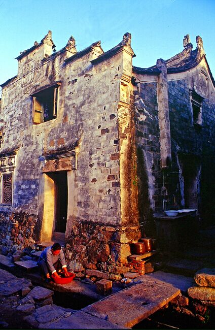 绕城而过的小河渠,渠水虽然不是特别的清净,但还有小鱼群在游。这小水渠有个浪漫的名字叫化龙渠。化龙渠开掘的历史已有六百多年,甚至比桃渚建城的时间还早。老人们相传,这化龙渠上原来有一座化龙桥,但谁都没见过。三三两两的居民在渠里洗衣,一派浓郁的水乡风情。