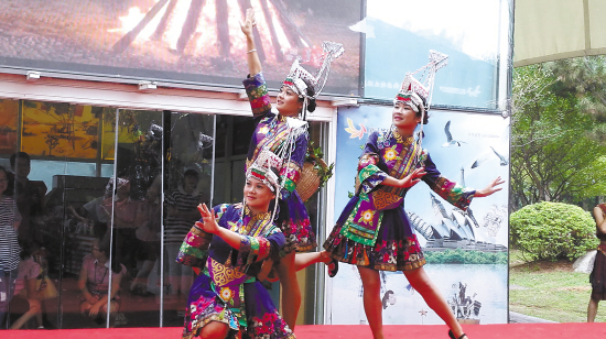“中秋+国庆”长假将近,旅游业持续升温布局正当时。9月19日,大型畲族风情旅游剧《印象山哈》在台州市民广场首演。浙江畲族歌舞团的20多位演员载歌载舞,用饱满的热情演绎畲乡风情,为广大台州游客展现别样的畲族文化。该宣传推广活动由浙江华夏国际旅行社有限公司,景宁县人民政府、文化广电新闻出版局和景宁县风景旅游局等单位联合举办,中秋、国庆假期将热闹两地旅游市场,进一步拉动旅游经济增长。据了解,该剧是由参加第四届全国少数民族文艺汇演获得表演金奖等九项大奖的《千年山哈》浓缩改编而成,由序、传师、耕山、盘歌、礼嫁和尾声六部分组成,用艺术的表现手法,使畲族山歌舞蹈、工艺建筑、服饰茶艺和体育竞技等文化艺术和畲乡风貌得以较好展示。