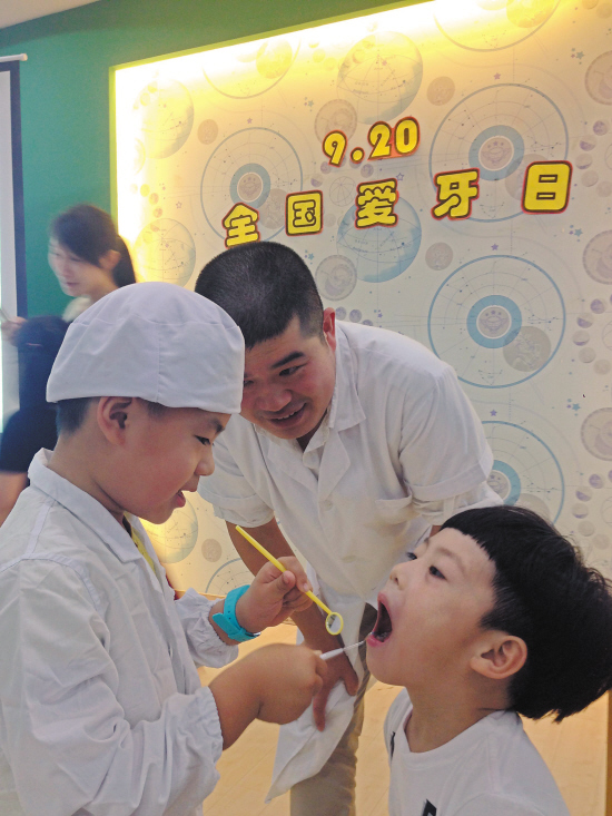9月20日是全国第27个爱牙日。日前,椒江区中心幼儿园开展了爱牙护牙宣传、教育系列活动,邀请牙科医生共同参与宣传互动活动,让幼儿戴上白帽子,穿上白大褂,体验当牙医,学习检查牙齿。