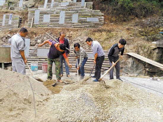 9月21日,天台县三州乡牌门村干群为书法碑廊开展义务劳动。牌门村是天台县首个浙江书法村,当地群众勤耕好读,以墨为乐。为弘扬乡土传统文化,丰富美丽乡村建设的内涵,该村精心收集名人墨迹用于刻碑,现已收集到碑刻55块,从中可以看到历代名家的书法精品及中国文字的演变历程。