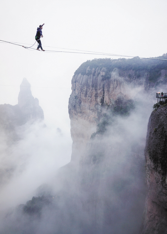 昨天上午,“2015浙江·神仙居第二届高空扁带挑战赛”在仙居神仙居景区开幕,来自全球的11位扁带高手,在两山之间表演了竞速赛、花样表演等各种扁带绝技,现场观众欣赏到了国际水准的高水平极限运动。