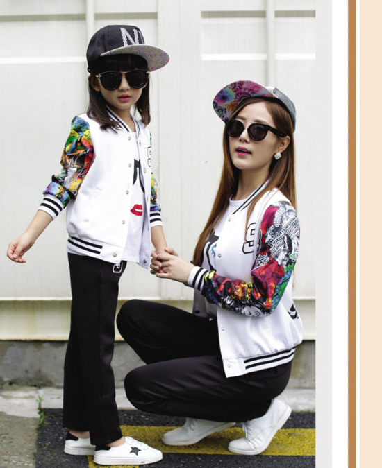 亲子装是现代流行休闲服装的一个分支,亲子装主要是由成人服装和儿童服装组成。主要包括:父子装、母子装、母女装及家庭装等。笔者在各家商场看到,亲子装的服装种类大多为卫衣、帽衫、t恤等。成人服装和儿童服装的剪裁基本一致,主要在大小、图案等细节上有所区别。亲子装上图案大部分是由相同,相似或者搭配起来有特别意思的图案组成。