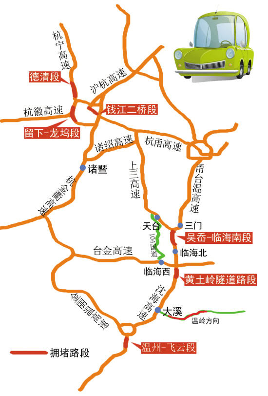 根据以往经验,台州高速G15沈海高速(甬台温)临海北至吴岙路段、黄土岭段这两个路段比较堵。