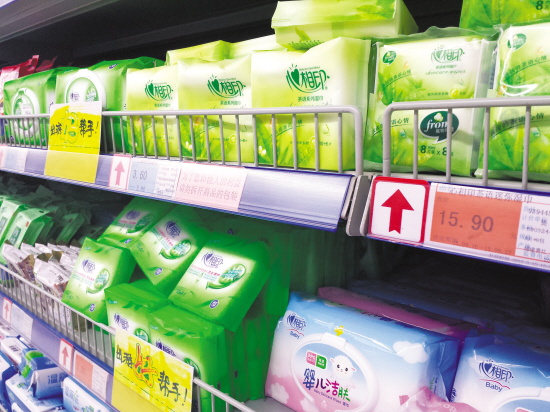 上周,记者走访了市区多家大型超市,发现上榜的心相印卫生湿巾、心相印茶语系列湿巾、bobo幼儿手口湿巾、妮飘方沁湿巾等产品均有在售。世纪联华市府大道店的部分湿巾正在做促销活动,其中有一些就是“上榜”产品。