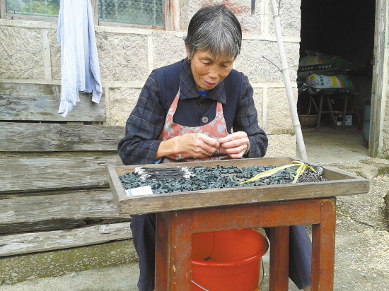▲张帮明妻子陈香凤,坐在一张小板凳上,安静地加工着节日灯。