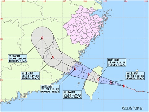 据浙江省气象台监测,今早8点,“杜鹃”的中心位于温州东南方向约600公里的洋面上。预计,“杜鹃”将于今天下午到夜里登陆台湾东北部,之后逐渐向福建沿海靠近,将于明天白天在福建中部沿海登陆。