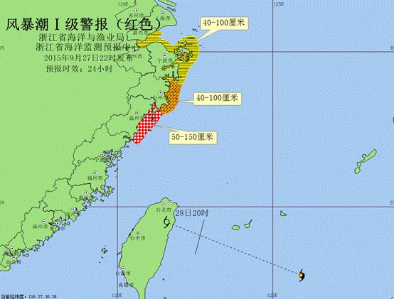 另外,省海洋监测预报中心预报说,明天夜间浙江沿岸将出现40厘米到150厘米的风暴潮。