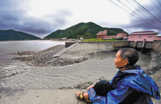 昨日下午,路桥区黄琅乡剑门港大坝上,一位进港避风的渔民正仰望着远处翻滚着的厚厚云层。而他右侧的港道闸门已经全部打开,滔滔河水正通过闸门奔向大海。当天,我市各地拉响了防御强台风“杜鹃”警报,积极做好台风防洪排涝工作。本报记者叶晓光摄