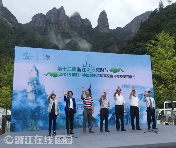 9月29日,第十二届浙江山水旅游节仙居分会场的开幕仪式在气势恢宏的神仙居景区举行,2015浙江•神仙居第二届高空扁带挑战赛也同步启动。借助浙江山水旅游节的品牌优势,仙居以自己的魅力打响了一场“升级战”。