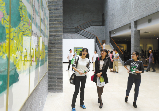9月29日,“魅力台州—上海美术家作品展”在台州书画院开展。展览吸引了大批市民和美术爱好者驻足观展。 记者李明锦摄