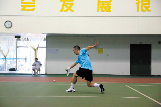 王剑是个有6年多网龄的网球球迷,但在跟国家队队员的切磋中,他显得有些局促,最后以1:7落败。