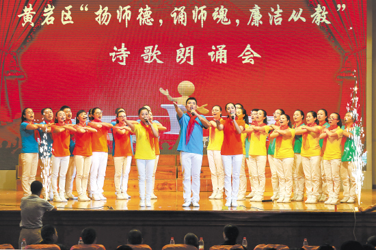 师道有尊扬正气,廉德无价袖清风。近日,黄岩区第一纪工委、黄岩区教育局联合组织全区中小学开展“扬师德、颂师魂、廉洁从教”诗歌朗诵比赛,引导全区教师牢固树立“德高为师、身正为范”的教育理念,以德修己,以德育人,塑造教师队伍的良好形象。郏静妮周薇薇摄
