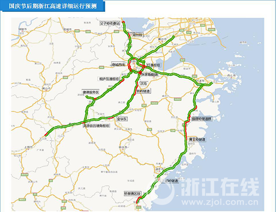 根据历年路网运行状况的数据分析,省交通部门对长假最后一天的道路情况给出了预测: