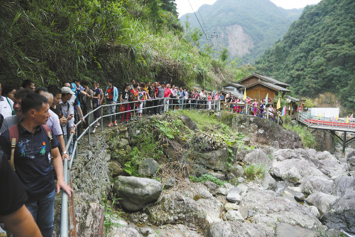 9月27日,由浙江华夏国旅组织的“走进台州——布袋山山水画廊游”千人团来到黄岩布袋山景区,24辆53座旅游大巴车,浩浩荡荡地开进这隐藏在大山深处的世外桃源。这是华夏国旅近期组织的第二次“千人同游布袋山活动”,此次共接纳外地游客1272人。此地连绵不断的山水画廊、深深的布袋文化和地道的土家菜,吸引了一批又一批台州本地及外地游客的到来。陈伟华摄