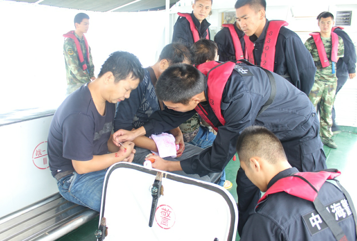 所幸正在附近海域执勤的海警33012艇接到求救报警后,火速赶到事发现场,将3名伤员救助到艇上。在对伤口进行初步包扎消毒处理后,将他们送往医院救治。目前,3人伤势稳定。