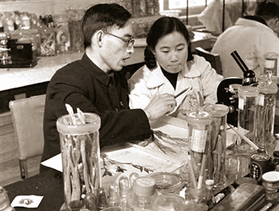 这张非常珍贵的照片,是20世纪50年代,屠呦呦(右)与老师楼之岑副教授一起研究中药的合影。