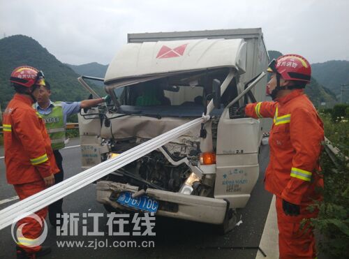 当天上午10点10分左右,浙江临海消防大队接到报警:浙江甬台温高速温州方向,燕居岭隧道附近发生车祸,有一辆厢式小货车与前车追尾,一名驾驶员被卡驾驶室内。