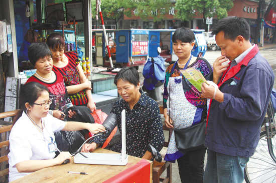 10月8日是第18个“全国高血压日”,当天上午,在路桥区蓬街镇杨府庙街,蓬街镇卫生院组织有关医务人员走上街头,开展了一场以“知晓您的血压”为主题的“全国高血压日”宣传咨询义诊活动,受到了广大群众的欢迎。
