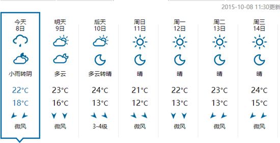 虽然相隔近1500公里,可明天傍晚这股冷空气就将抵达浙江。据浙江省气象台预报,届时我省将有4-5℃的降温过程。从后天开始,全省的最低气温将跌破15℃;10日、11日、12日3天杭城的最低气温分别只有13℃、12℃、13℃。