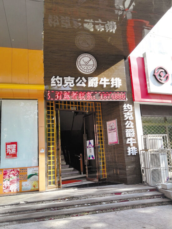 在君悦大厦南侧,有一家名为约克公爵的牛排馆。昨天上午,在卢先生的引导下,通过一楼门面房内的楼梯,记者来到这家位于二楼的牛排馆。