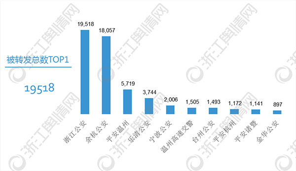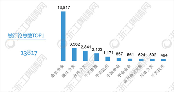 被评论数:“余杭公安”傲视群雄。9月,123个账号微博被转发总数达64963条,微博被评论总数共计30689条。“浙江公安”在被转发数上再次力压“余杭发布”夺得榜首,但领先优势并不明显。在评论总数上,“余杭公安”可谓傲视群雄,拉开100000+的评论量让后面的小伙伴们望尘莫及。