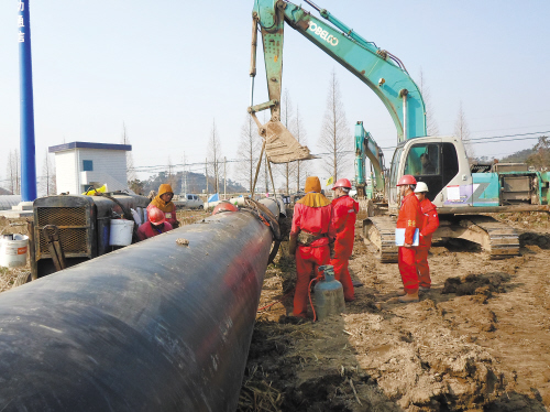 图为甬台温成品油及天然气长输管道工程施工现场。通讯员杨思思摄
