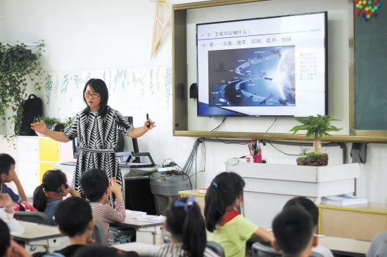 “什么是卫星?”“卫星能干什么事?”“卫星是怎么发射的?”……于灵慧将卫星的奥秘娓娓道来,同学们伸长了脖子,竖起了耳朵,甚至有小粉丝在拍照记录。角落里,批改作业的数学老师也停了笔,开始认真听课。