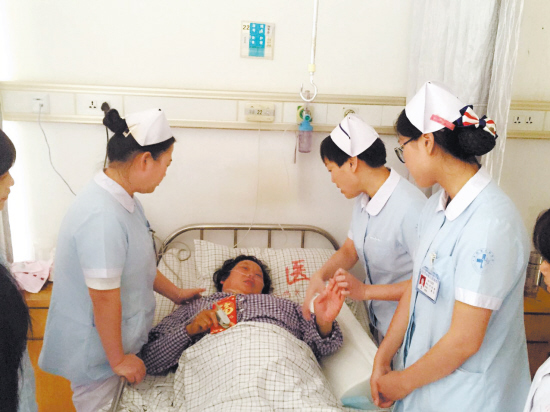 9月6日,在镇上打工加班到凌晨3点,回到医院照顾孙亚萍时,因劳累过度加上血压过高,庞菊香突发脑梗塞中风,导致半个身体偏瘫。