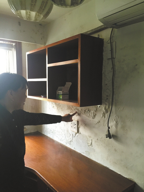 “房子装修才三四年,墙壁就成这样了,楼上要是洗澡烧饭,用水多,我家的墙壁就开始‘滴答’地流水,北面的两个房间都没法住人了。”黄女士指着剥壳的墙壁叹了口气。