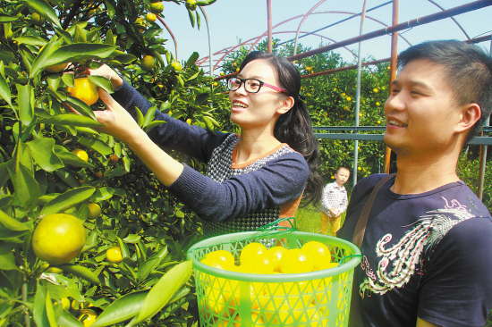 春来花开如雪,秋至金果满枝。连日来,坐落在黄岩澄江街道的千亩“中国柑橘观光园”,吸引了一批批前来观光、自由采摘的游客。自国庆节开园以来半个月多时间,该园已接待各地游客1.6万多人次。章祖跃摄