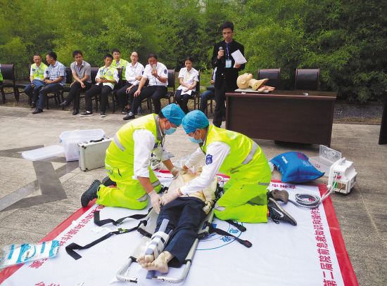 这一场景,是10月20日举行的市第二届院前急救知识和操作技能竞赛的比赛现场(上图)。在急救操作技能项目的比赛现场,伤者用模拟人替代,参赛的医生与驾驶员是各县(市)急救中心(第一人民医院)、市区各急救分站急诊科的医生和120救护车驾驶员。