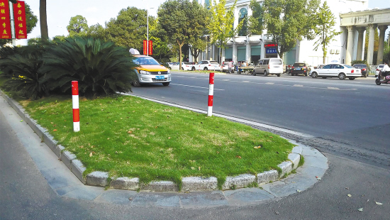 前天下午,记者来到位于临海银泰城东侧的勾山加油站。出入加油站机动车道,需要经过两道绿化带之间的缺口,而市民们所说的“事故点”,就在非机动车道从绿化带缺口拐入机动车道的转角处。