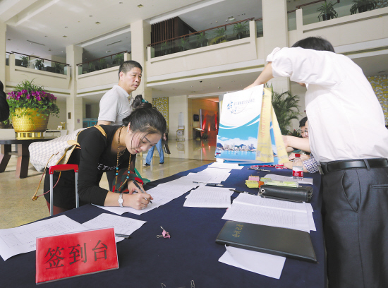 今天,市异地商会联谊会第十次大会举行,来自国内外的台州异地商会代表欢聚一堂,共叙乡情、共话友谊、共谋发展。图为昨天下午,与会人员陆续前来办理报到手续。