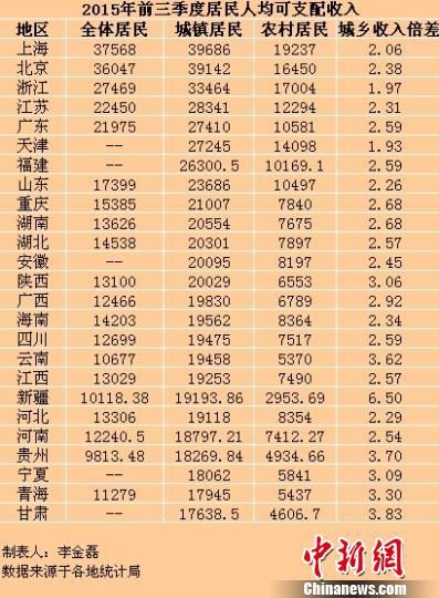 近日,中国各地2015年前三季度居民收入数据陆续出炉。
