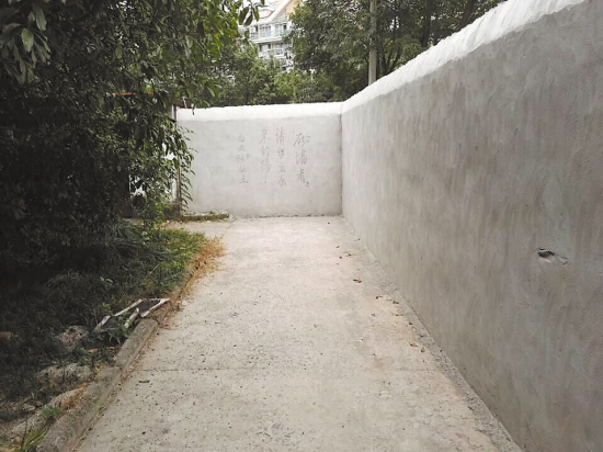 昨天上午,记者来到白云新村老林所说的位置,看到了一堵新砌起来不久的围墙,它位于46号楼正前方,围墙的西面连接着46号楼住户的一排车房。