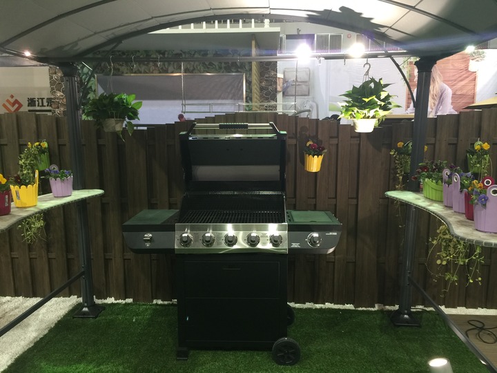 这个烧烤炉个子和小编一样高,右侧挡板往上翻,里面是煤气灶。约上两三好友,阳光正好,在庭院里滋滋撸串,打打牌,吹吹牛。