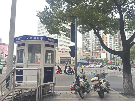 图为位于椒江十字马路的交警执勤岗亭。依托这一“网格化”勤务管理机制,大大提高了路面见警率、管事率和快处率。徐晔摄