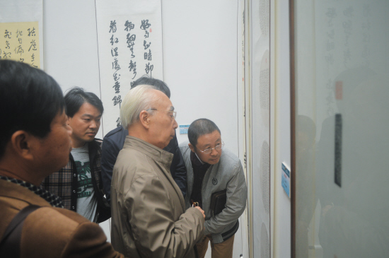 每次展出,作为东道主的台州市书协副主席、椒江区书协主席黄元及,总会带领骨干人员前来参观。“每次过来都会有不少的收获,比如此次临海篇,他们在布展上下了不少工夫,用的都是灰色或奶黄色,统一格调,犹如一幅大件的作品。”黄元及说。