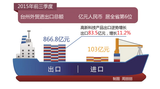 在此情形下,虽然近期人民币贬值有利出口,但是国外采购商也借此纷纷要求降价打折,企业出口形势并未见好转。而高新技术产品出口虽然强势增长,但其增长点打造尚需时日。台州海关相关工作人员认为,在今年第四季度,我市应在稳固传统优势产业发展同时,加快培育外贸竞争新优势,比如加快技术创新步伐,促进出口结构优化。