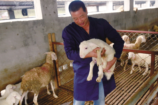 就在徐文斌检查羊舍的时候,发现一只小羊羔前脚不能站立,一直在叫唤。“这是缺钙的现状,以后给它喂些鱼肝油,慢慢会好的。”他嘱咐一旁的工作人员,他看起来俨然一副“羊专家”的样子。