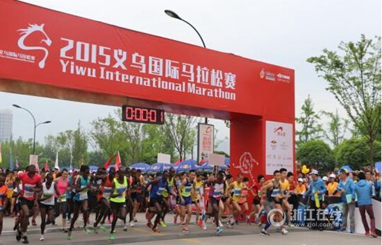 今年4月19日,2015浙江义乌国际马拉松赛在当地梅湖体育中心鸣枪开跑,来自29个国家的8284名运动员和跑友参加了半程21公里和迷你马拉松6.5公里的比赛。