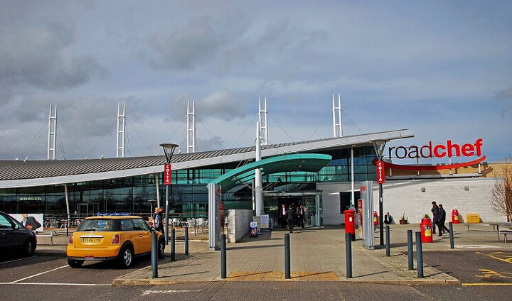 从伦敦出发前往斯塔福德小镇,从斯塔福德小镇到曼彻斯特之间的服务区基本上为分离式服务区,两侧采用通道或天桥连接。根据功能需要,主要由停车区、司机、旅客休息区(含餐饮、购物、住宿、休息厅、厕所、娱乐)、车辆维修区(维修车间和修车广场)、加油区(含油库、加油大棚、站房)、活动休闲广场等组成。